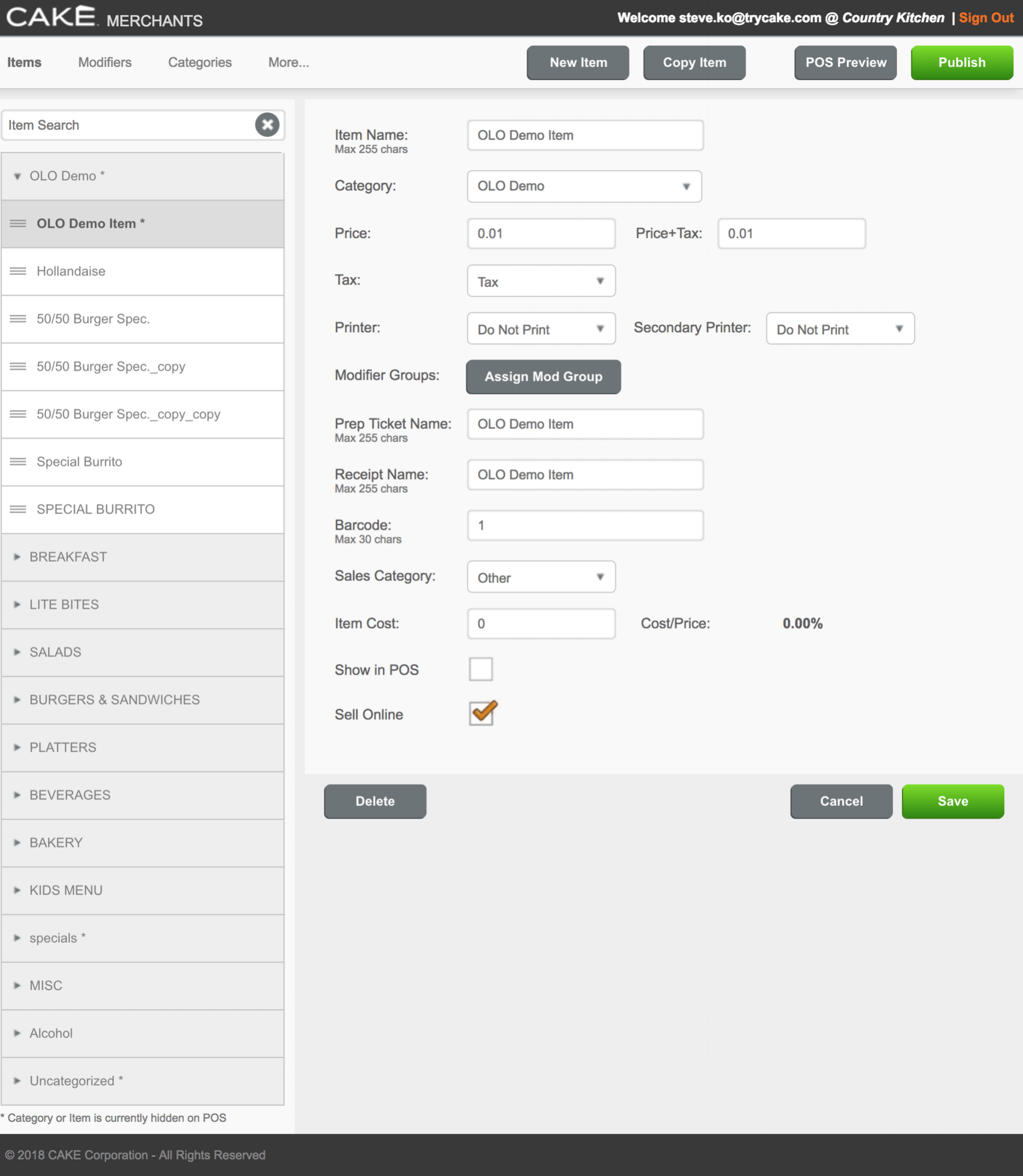 I can access POS, Guest Manager, and Cake's Online Ordering to make changes when need.